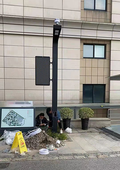 为了克服现有技术存在的不足,目前市场上已经拥有了一种带有环境监测功能的智慧路灯,将路灯和环境监测设备相结合,提高环境监测模块的监测密度,环境监测模块与多种传感器相结合,实现监测数据的集中整合,达到采集的全面性。